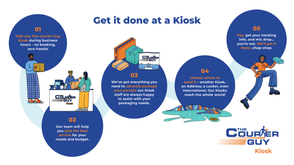 From shopping malls to business hubs, you’ll find a Courier Guy Kiosk near you! Whether it’s on your daily route or right in your hood, your shipping solution is always ‘round the corner.